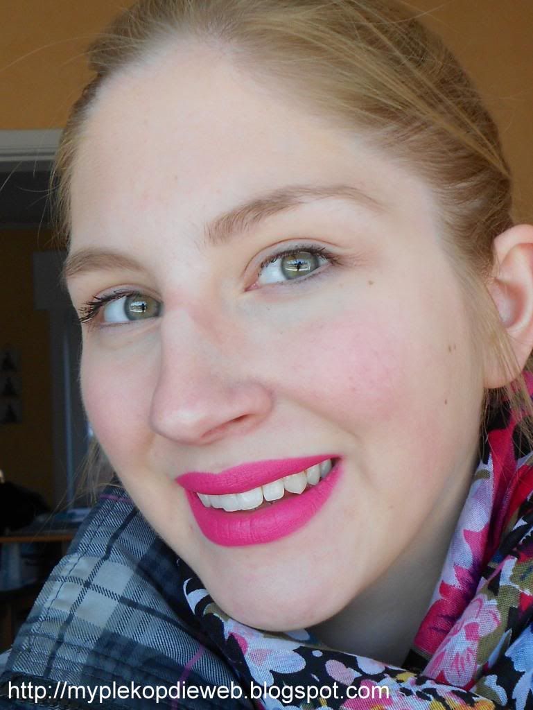 Op mijn gezicht bracht ik de BBCream van Garnier aan, deze in de vernieuwde versie voor de vette huid. Op mijn ogen bracht ik een likje mascara aan. Ik werkte mijn wenkbrauwen bij met het wenkbrauwsetje van Catrice. En als knaller bracht ik mijn felroze lipstick aan van het merk Make Over welke te koop is op Zalando.